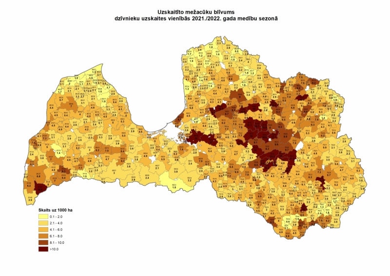 Novērtēto un nomedīto dzīvnieku blīvumi.
